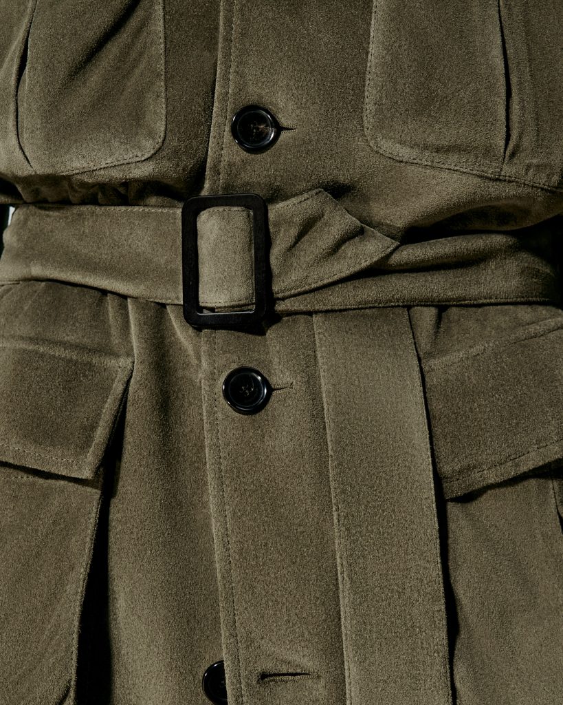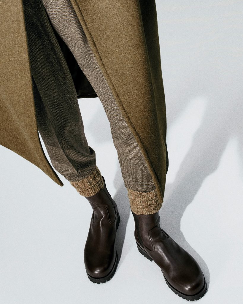 Die Herrenkollektion folgt einer fließenden Silhouette. Weiche Konstruktionen, natürliche Linienführung, Anzüge mit zurückhaltender Strenge. Ikonen wie Spagna, Roadster oder Winter Voyager erscheinen neu interpretiert. Die Rovasenda-Jacke – inspiriert von einem historischen Modell aus dem piemontesischen Dorf gleichen Namens – verbindet urbane Funktionalität mit subtiler Eleganz. Materialien wie Baby Cashmere, The Gift of Kings®, Pecora Nera® und Merino entfalten eine taktile Präsenz, die zwischen Leichtigkeit und schützender Dichte changiert. Farblich bewegt sich die Kollektion von warmen Ocker- und Terrakottanuancen über Grau- und Brauntöne bis hin zu dunklem Grün und Schwarz-Weiß-Kontrasten für den Abend.