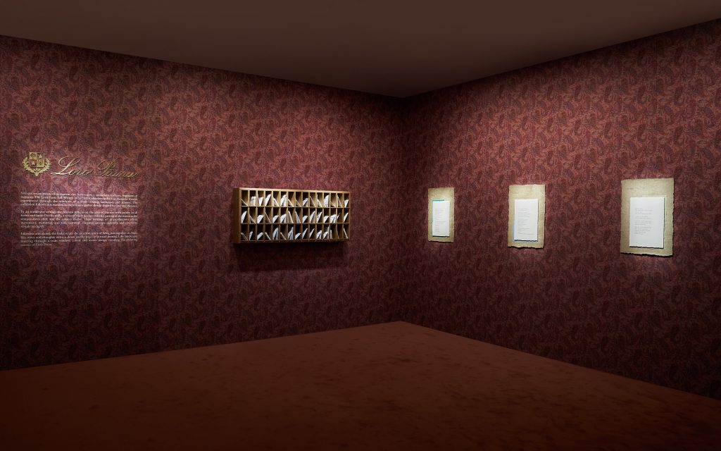 Kurze Gedichte empfangen die Gäste, verteilt wie flüchtige Gedanken. Eine schwebende Bibliothek mit kleinen Heften lädt zum Innehalten ein, während eine Stimme die Texte rezitiert. Es geht um Jahreszeiten, um Temperaturwechsel, um Farben, die sich verändern. Bewegung, Gedächtnis, Dauer – Themen, die sich leise mit der Kollektion verweben.