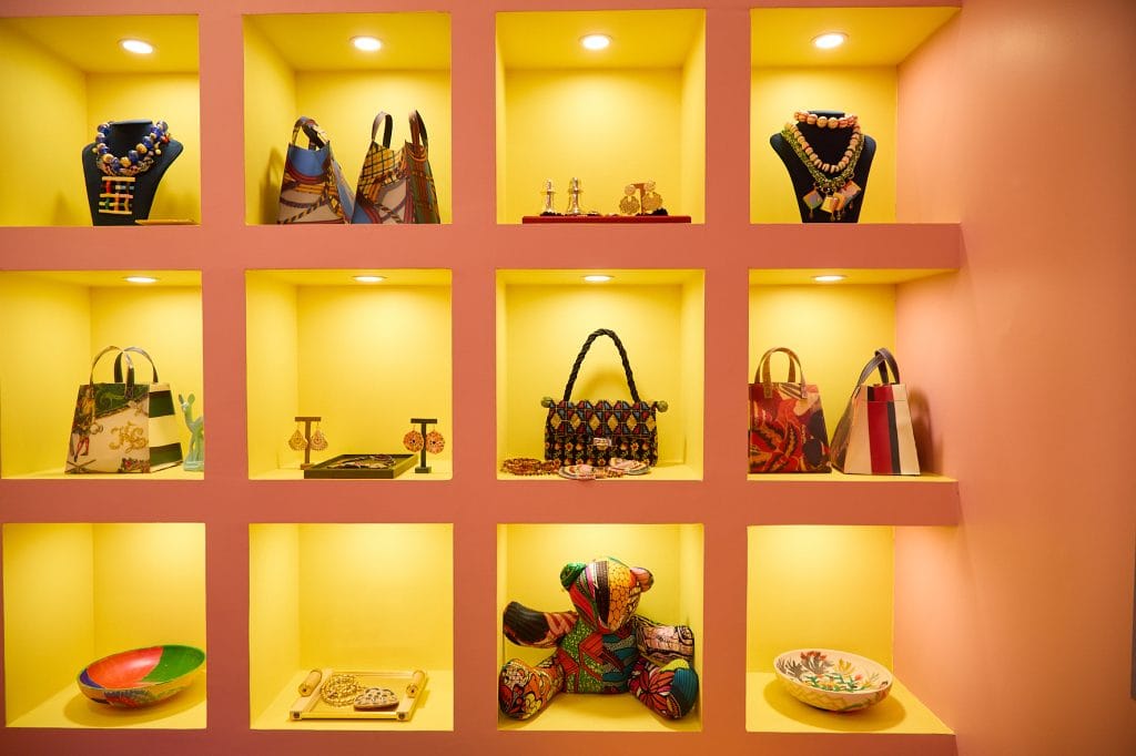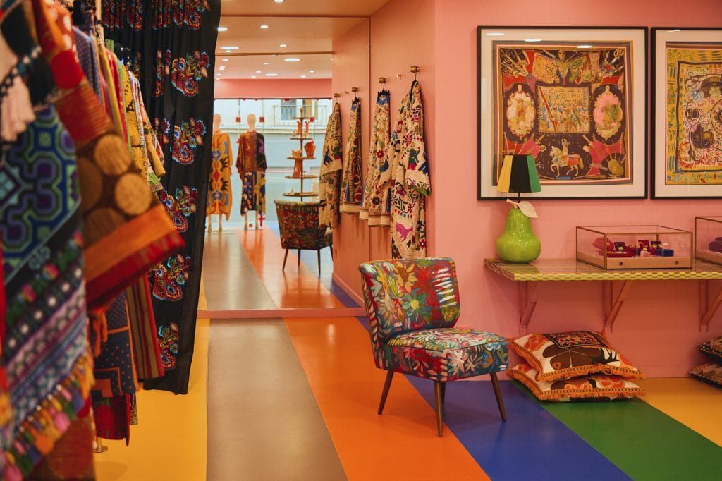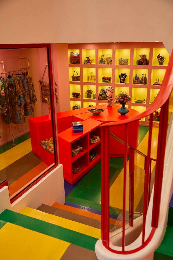 The store showcases RIANNA + NINA’s signature print ready-to-wear collections alongside One-of-a-kind pieces handcrafted in the Berlin atelier using rare vintage textiles. A curated selection of bags, accessories, and home treasures reflects the vibrant and eclectic world of Rianna Kounou, founder and creative director of the brand.