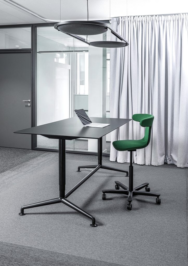 Auch das Thema Material spielt beim W-ork Pad eine wichtige Rolle. Besonders sichtbar wird das beim W-ork Pad Green, einer Variante, die Nachhaltigkeit und ergonomisches Design miteinander verbindet. Hier verwendet Wagner den sogenannten Nautilus-Stoff, ein Textil aus hundert Prozent recyceltem Polyester, das SEAQUAL-zertifiziert ist. Das Material wird aus recyceltem Meeresplastik sowie aus PET-Flaschen gewonnen und steht exemplarisch für eine neue Generation von Textilien, die Funktionalität und Umweltbewusstsein miteinander verbinden. Trotz seiner nachhaltigen Herkunft überzeugt der Stoff durch Robustheit, angenehme Haptik und eine klare, reduzierte Optik, die sich problemlos in unterschiedliche Interior-Konzepte integrieren lässt.